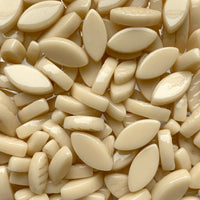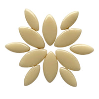 Add an extra dimension to your mosaic with our unique collection of cast, sintered and recycled glass flower petals and leaf shapes. These tiles bring a special element to your design and make your creations stand out even more. Each colour in this collection consists of a mix of two sizes: 14x6mm and 21x9.5mm. These different sizes create an engaging and vibrant effect in your mosaic. The tiles have beautifully rounded edges and have a height of about 5mm. Please note that due to the mix of sizes, the numbers may vary by weight. However, this adds to the unique look of your mosaic project, giving it an organic and natural charm. With the use of recycled glass, these tiles not only make an artistic statement, but also contribute to a sustainable and environmentally conscious choice. Add a touch of natural beauty to your mosaic creations with these beautiful cast glass petals and leaf shapes. Use these tiles to create works of art that reflect the beauty of nature and take your designs to the next level.
